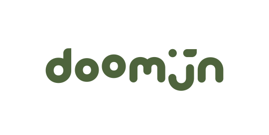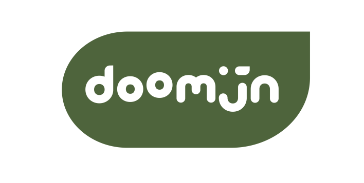 Het Doomijn logo is dynamisch. Dit houdt in dat er per uiting gekeken kan worden welke versie er gebruikt wordt en in welke kleur. Het logo mag in elke kleur gebruikt worden indien deze genoeg contrast heeft met de ondergrond. Standaard wordt er voor donkergroen gekozen.