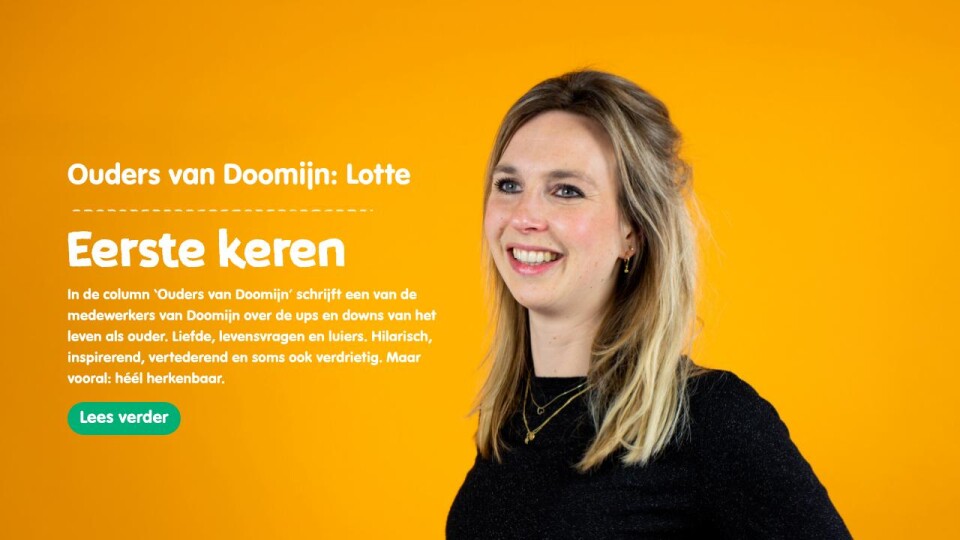 In de column ‘Ouders van Doomijn’ schrijft een van de medewerkers van Doomijn over de ups en downs van het leven als ouder. Liefde, levensvragen en luiers. Hilarisch, inspirerend, vertederend en soms ook verdrietig. Maar vooral: héél herkenbaar.