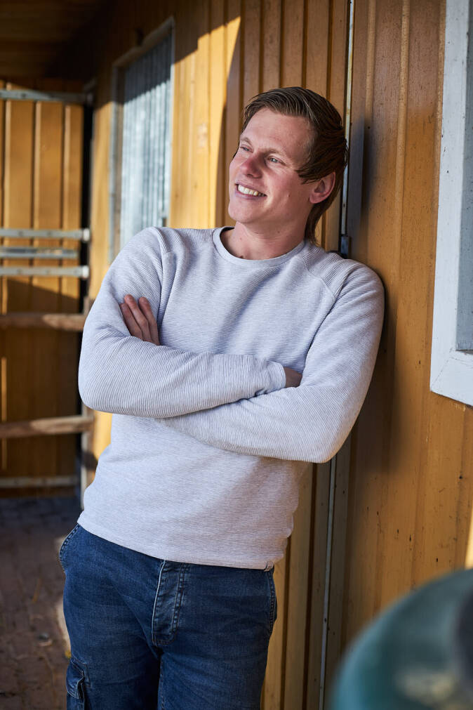 ‘Dat klopt. Gelukkig zijn we nog steeds enthousiast over de opvang. Ook al loopt het nu wat anders. Oh! Jij trekt de laarzen er al bij aan? Verstandig, zo in de stal. Even een mok koffie erbij, het zonnetje schijnt al buiten. Dat maakt het helemaal af! Maar, even iets anders: wat doe jij nou eigenlijk in het dagelijks leven, Sonny?’