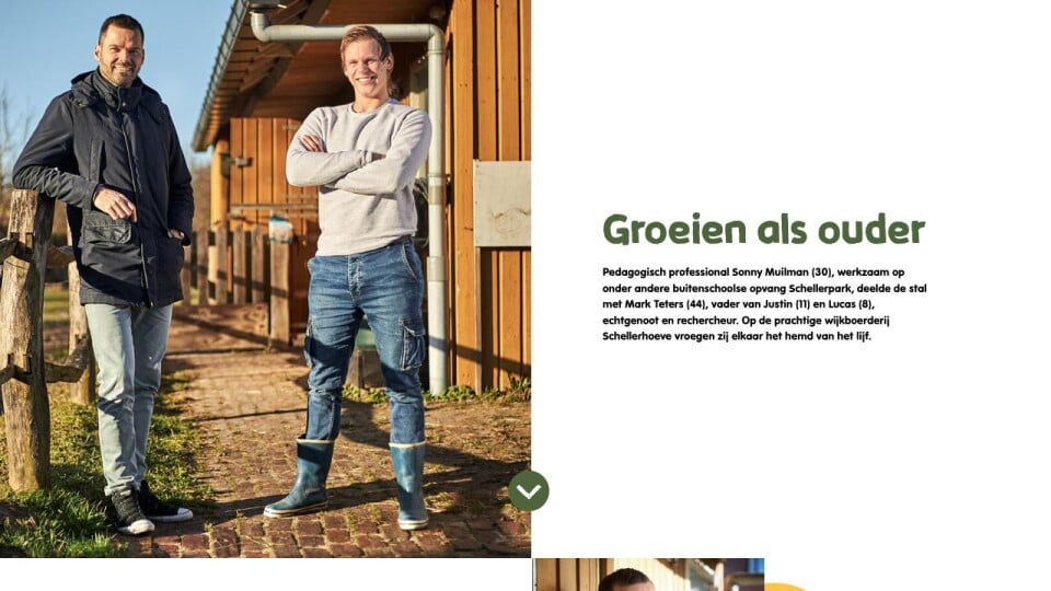 Pedagogisch professional Sonny Muilman (30), werkzaam op onder andere buitenschoolse opvang Schellerpark, deelde de stal met Mark Teters (44), vader van Justin (11) en Lucas (8), echtgenoot en rechercheur. Op de prachtige wijkboerderij Schellerhoeve vroegen zij elkaar het hemd van het lijf.