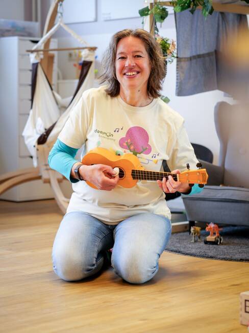 ‘Kom erbij, kom erbij. Het is hier leuk voor jou en mij!’ Met een aanstekelijk riedeltje op haar ukelele verwelkomt Daniëlla je bij haar activiteit. In alle regio’s waar Doomijn werkt, kom je Daniëlla tegen. Op de locaties of bijvoorbeeld de bibliotheek en altijd met haar tas vol instrumenten, linten en andere attributen om van iedere activiteit een feestje te maken.