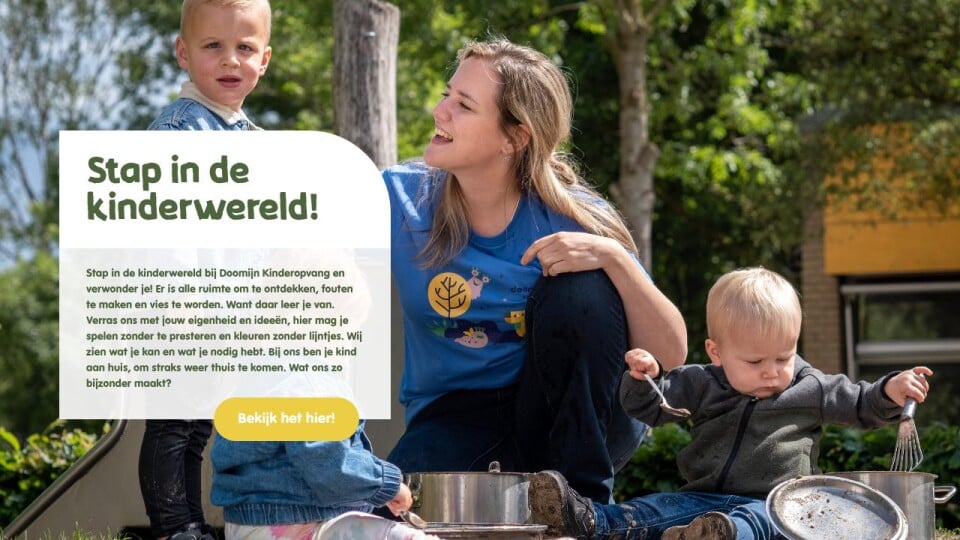 Stap in de kinderwereld bij Doomijn Kinderopvang en verwonder je! Er is alle ruimte om te ontdekken, fouten te maken en vies te worden. Want daar leer je van. Verras ons met jouw eigenheid en ideeën, hier mag je spelen zonder te presteren en kleuren zonder lijntjes. Wij zien wat je kan en wat je nodig hebt. Bij ons ben je kind aan huis, om straks weer thuis te komen. Wat ons zo bijzonder maakt?